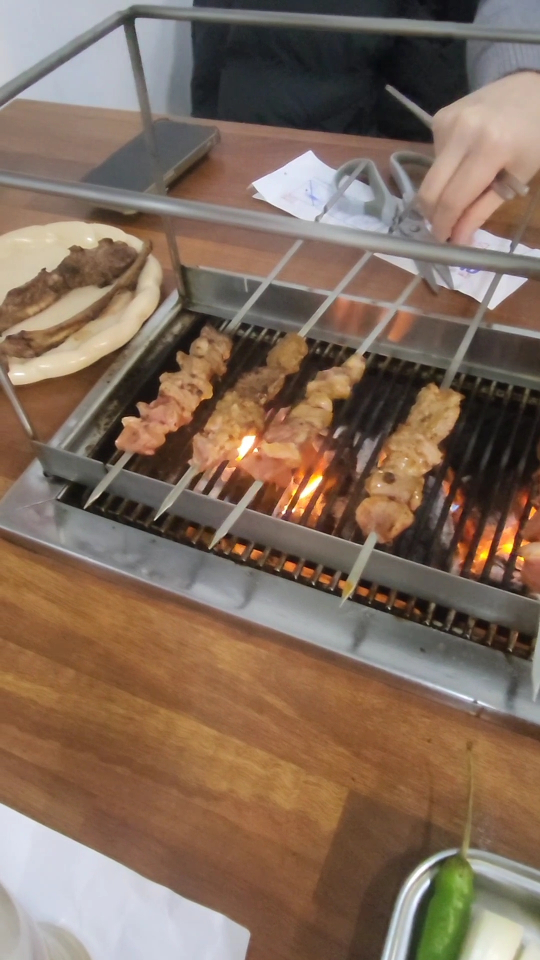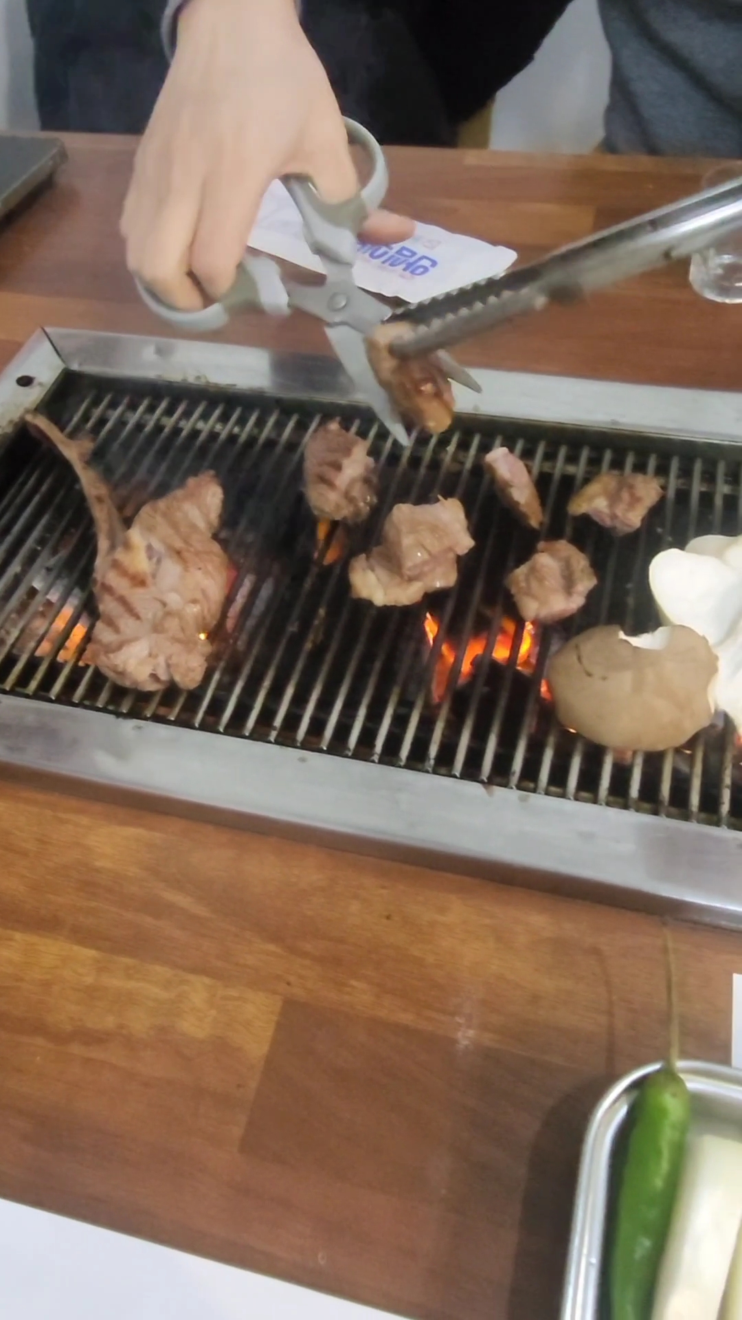 - 양등심·삼겹·어깨살 부위별 다른 식감 즐기기, 비린내 없고 고소함. 중국식 소스와 쌈장에 찍어 먹음.