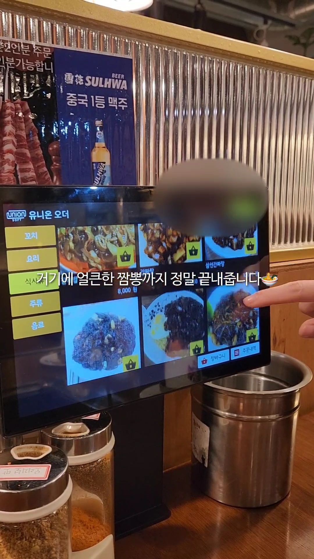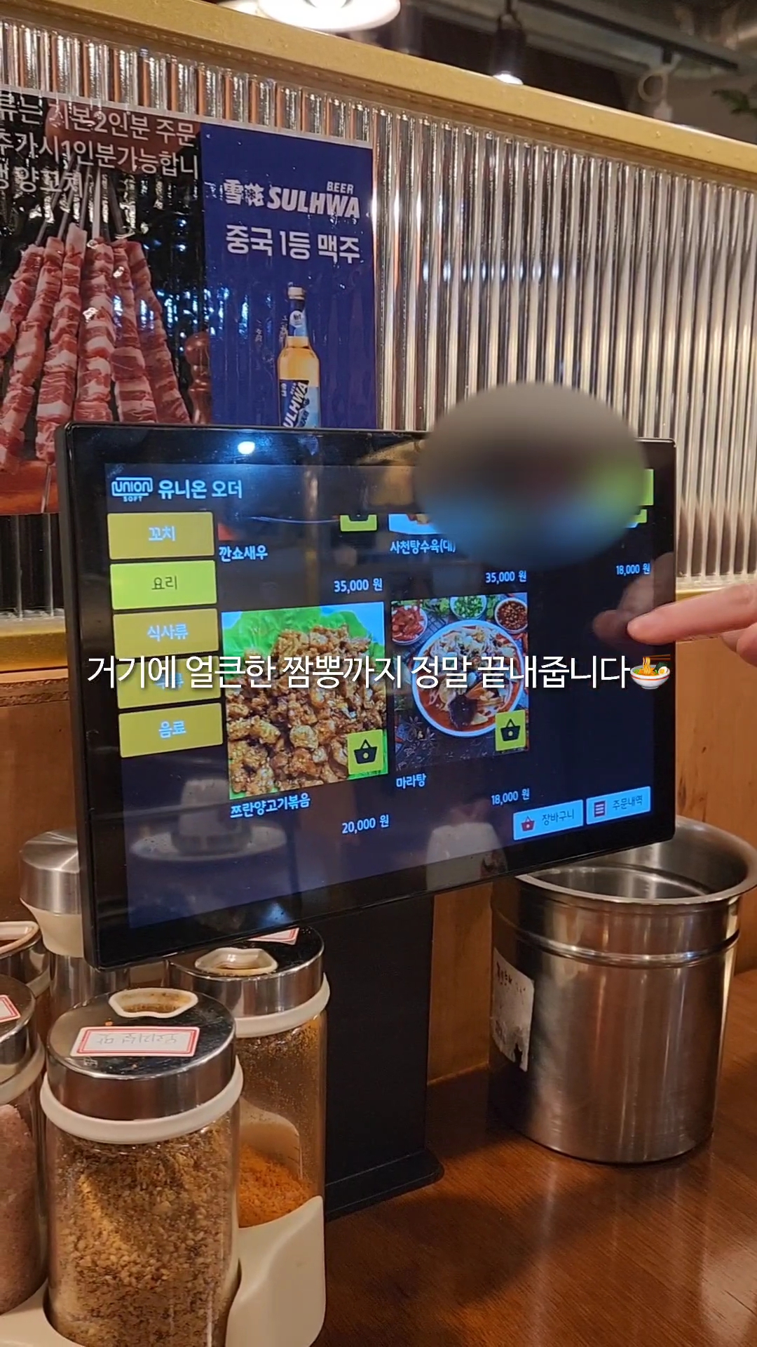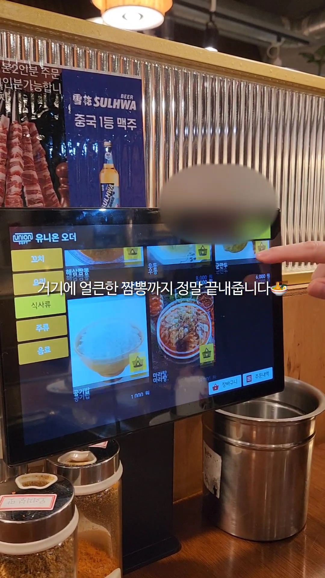 - 기본 반찬(땅콩, 양파절임, 짜사이 무침) 셀프바에서 채우기.