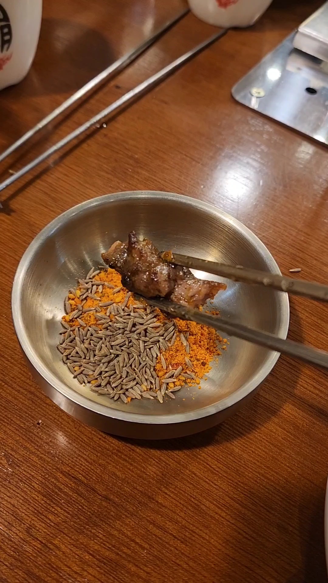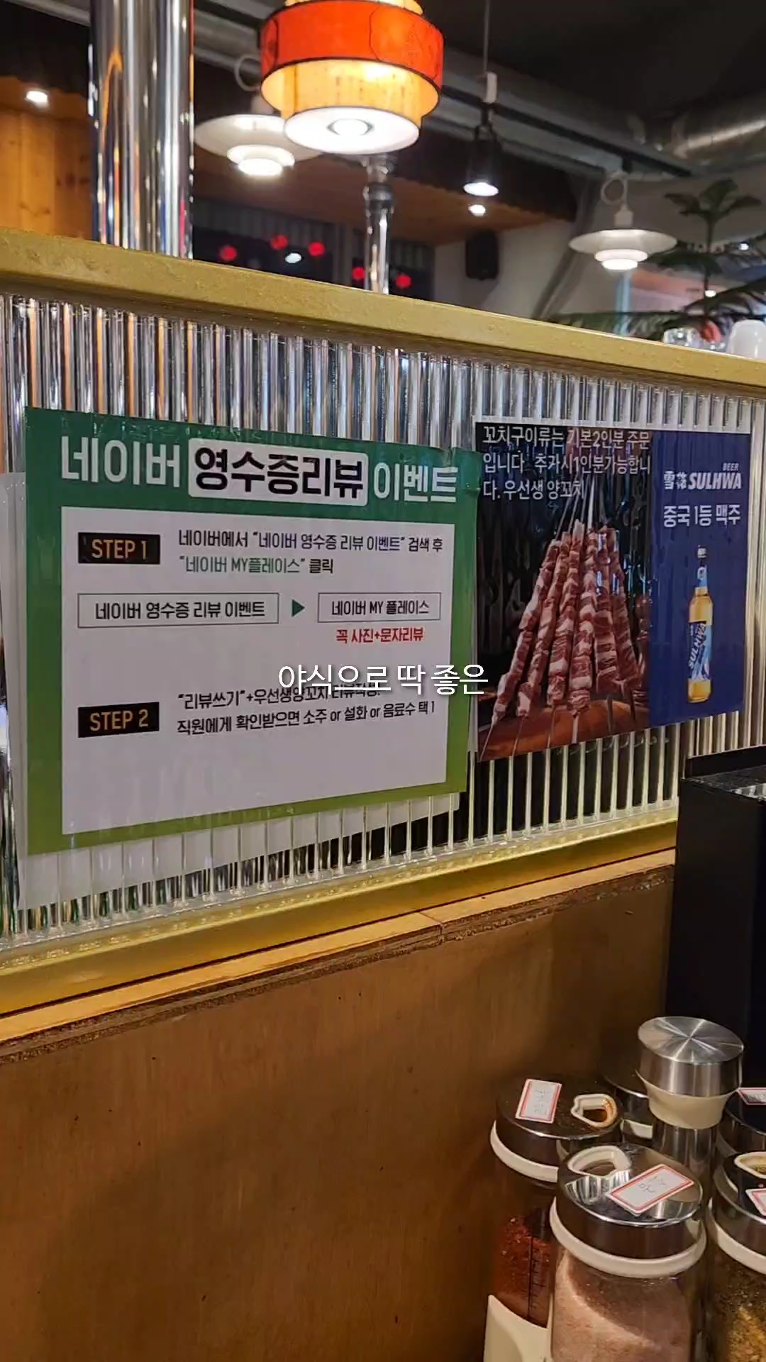 - 양꼬치 숯불에 익혀 쫄깃한 식감 즐기기, 잡내 없고 부드러움. 꿔바로우 바삭함이 포인트.