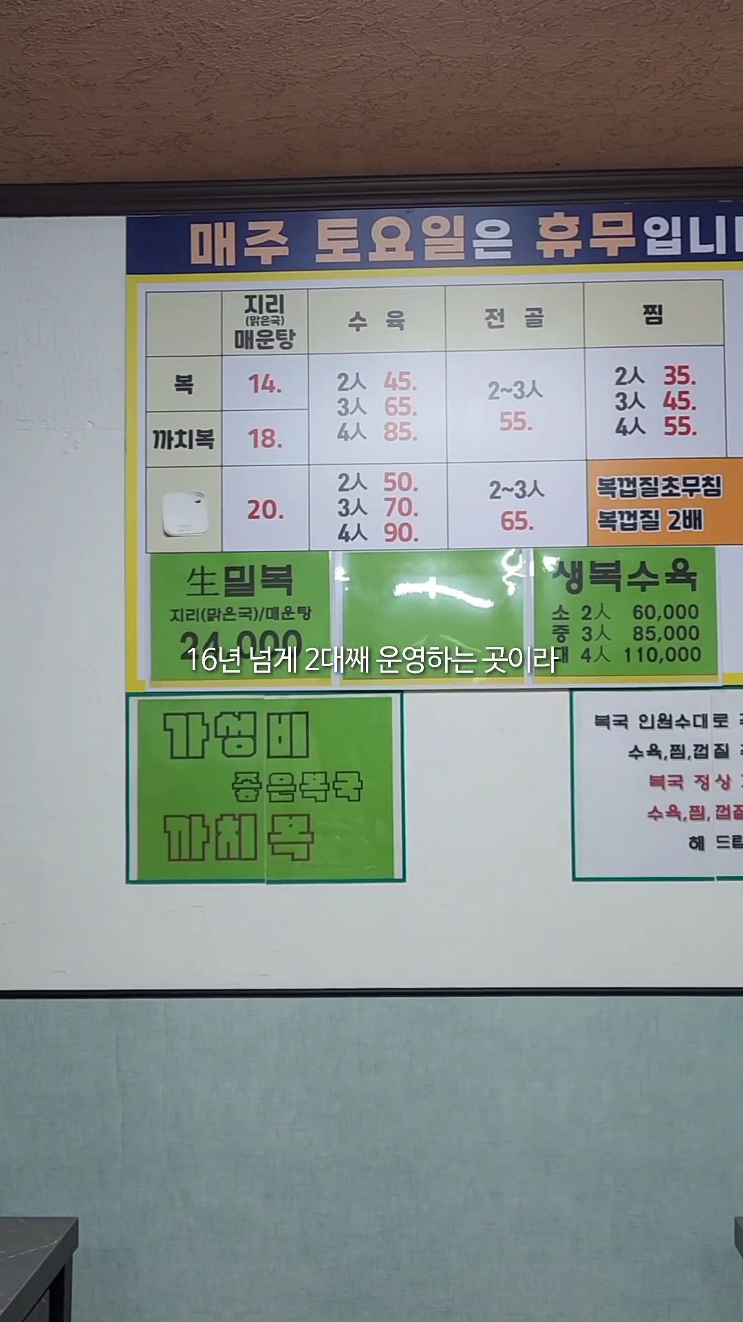 - 부산 금정구 서동 골목에 자리 잡은 청수생복은 16년 넘게 2대째 운영하는 복어요리 전문점이에요.